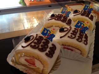 ケーキを囲んでお祝いを・・・。